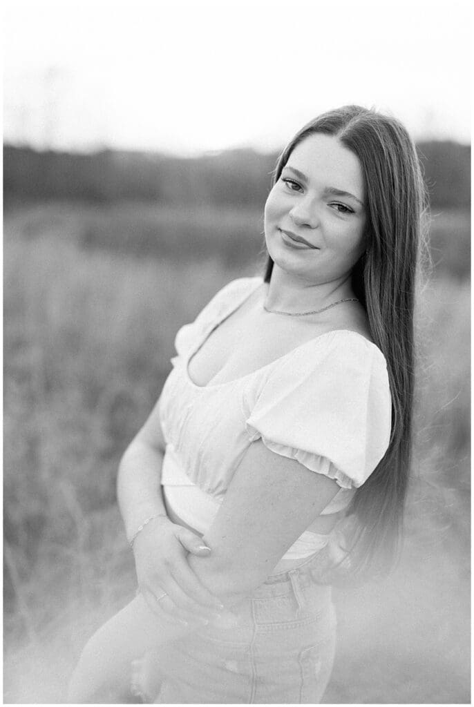 Classic and elegant senior portraits at a meadow in Knoxville.